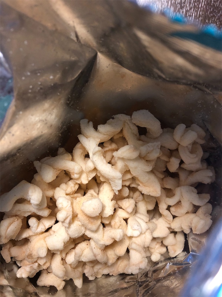 見た目通り、味もポップコーンとカールの中間のようです。