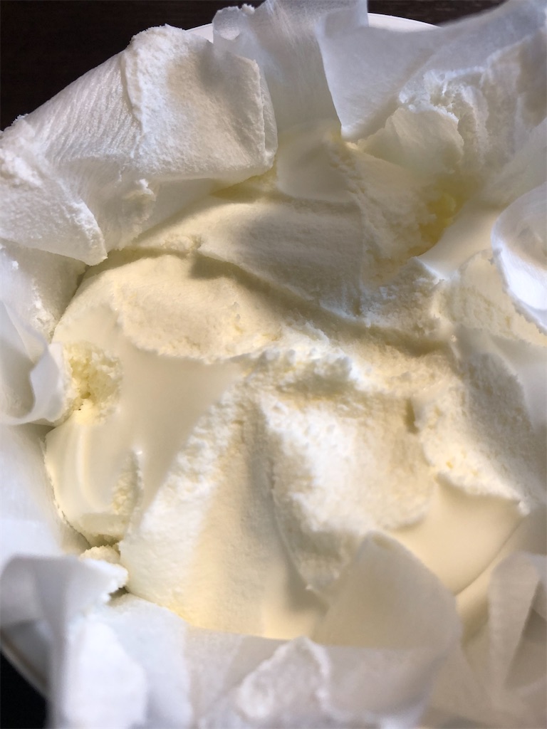 今やケーキ屋さんでこのタイプ(ガーゼで包まれている)のレアチーズケーキを見る事は珍しくありませんが、昔は衝撃だったな~